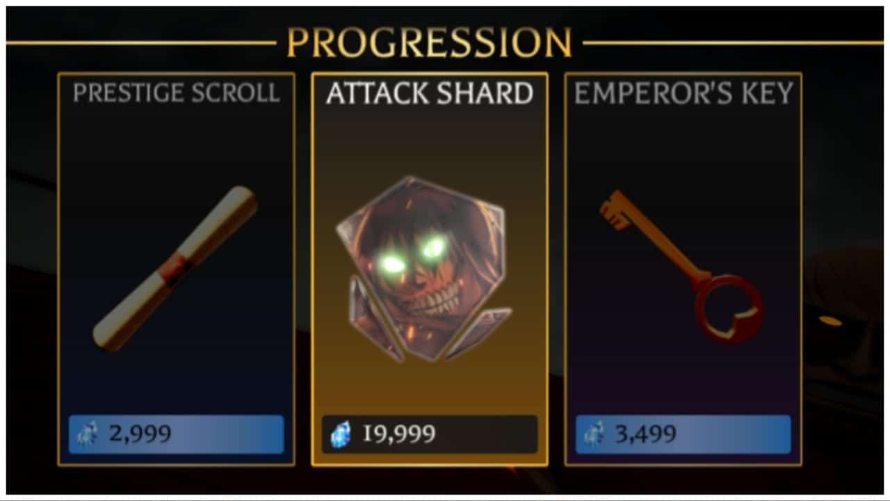 Основной способ получения — рейды. В Update 1 доступен только один тип: Attack Titan Raid. Шанс выпадения Attack Shard зависит от сложности выбранного рейда. Осколки можно найти в двух сундуках: Raiders Chest (бесплатный) и Emperors Trove (требует Emperor’s Key). Чтобы получить награду, нужно нанести как минимум 5% урона в рейде. Raiders Chest имеет меньший шанс, чем Emperors Trove.