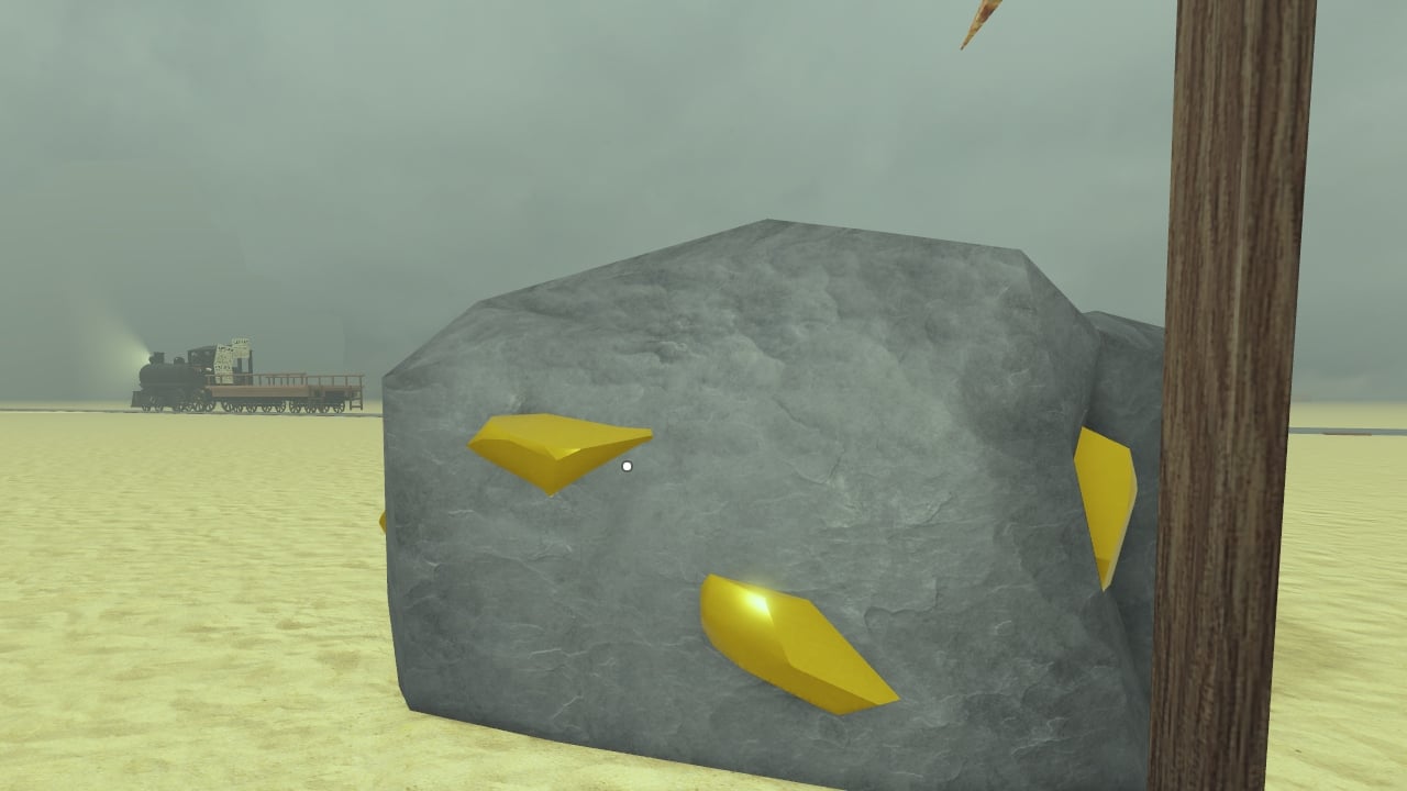 Скалы с рудой вы найдете вдоль маршрута Dead Rails. Они выглядят как большие серые валуны, из которых торчат вкрапления минералов. Цвет этих вкраплений определит, что именно находится внутри.