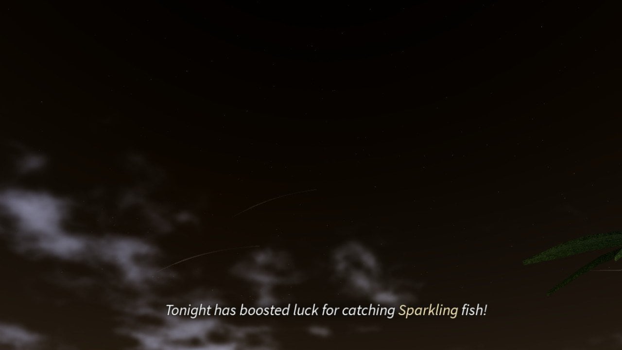 Начинается только ночью. Дает шанс любой пойманной рыбе получить Лунную мутацию, которая увеличивает размер и ценность следующего улова.