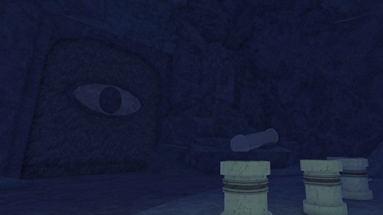 Следуйте по проходу пещеры, пока не выйдете на поверхность. Вы увидите запечатанную дверь с изображением глаза и пятью постаментами. Обратите внимание на изрядное количество скелетов. Если ваш бестиарий Desolate Deep заполнен, вы сможете разместить Зачарованные Реликвии на постаментах. Как только вы установите их все, дверь откроется, пропуская вас в храм.