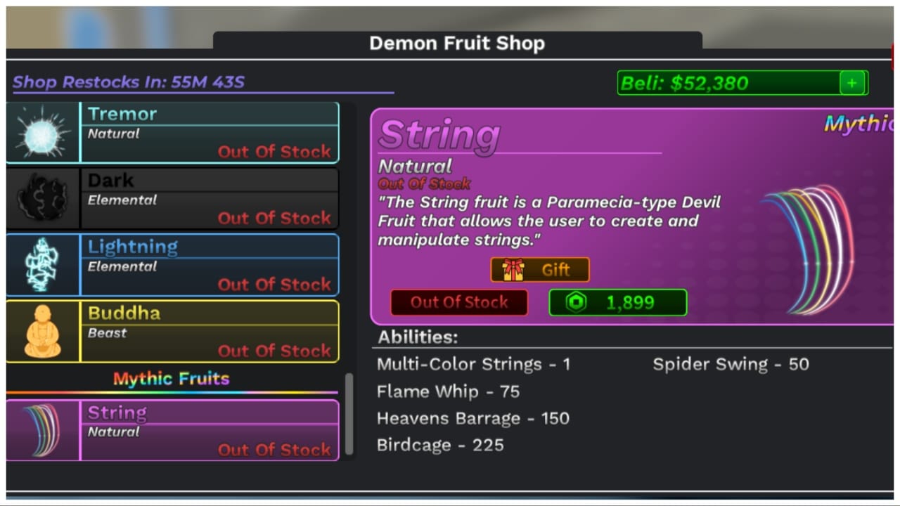 Дьявольские Фрукты являются основой любой приличной игры, вдохновленной вселенной One Piece. Эти необычные плоды наделяют потребителя силами, которые можно использовать в бою, значительно облегчая перемещение по Гранд Лайн. Однако будьте осторожны: если вы решите сделать ставку на силу определенного фрукта, вы потеряете способность плавать!